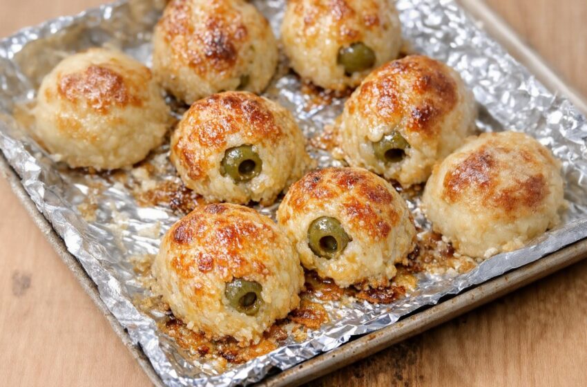 💡 Crucial Step: Pat the olives completely dry! Moisture is the enemy here. Drying them thoroughly is what allows the cheese mixture to cling securely to the olive and keeps the “bombs” from melting into watery puddles in the oven.