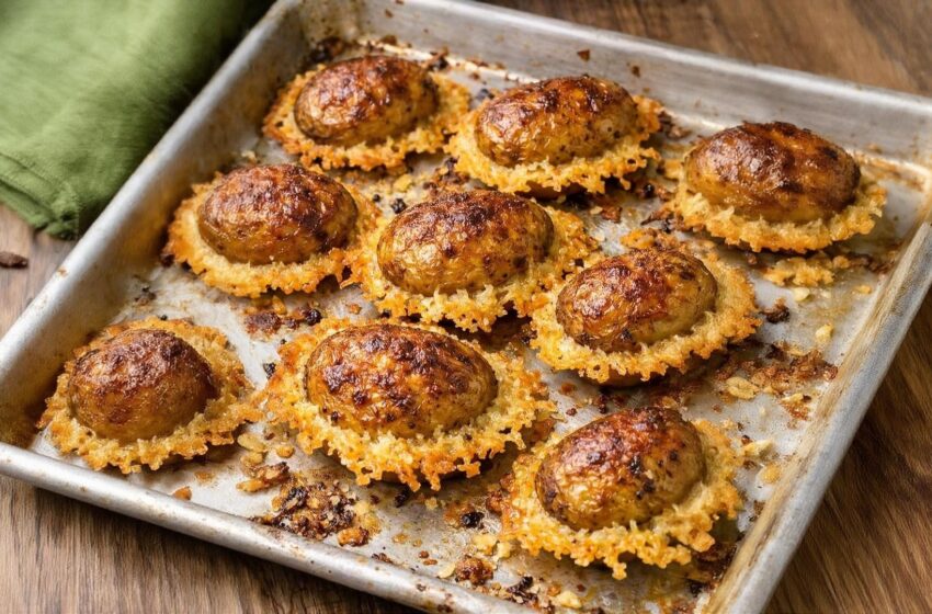 - The “Cheese Skirt”: The parmesan melts and crisps on the pan, creating a crunchy, savory crust attached to every single potato half.