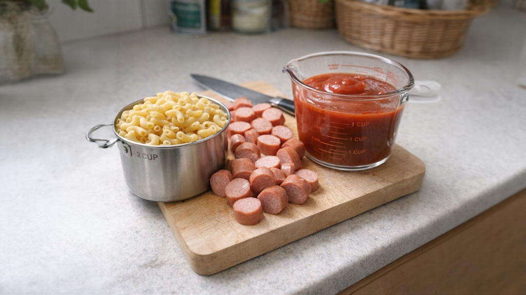 - ✨ Only 3 Ingredients: You literally just need dry pasta, hot dogs, and ketchup.