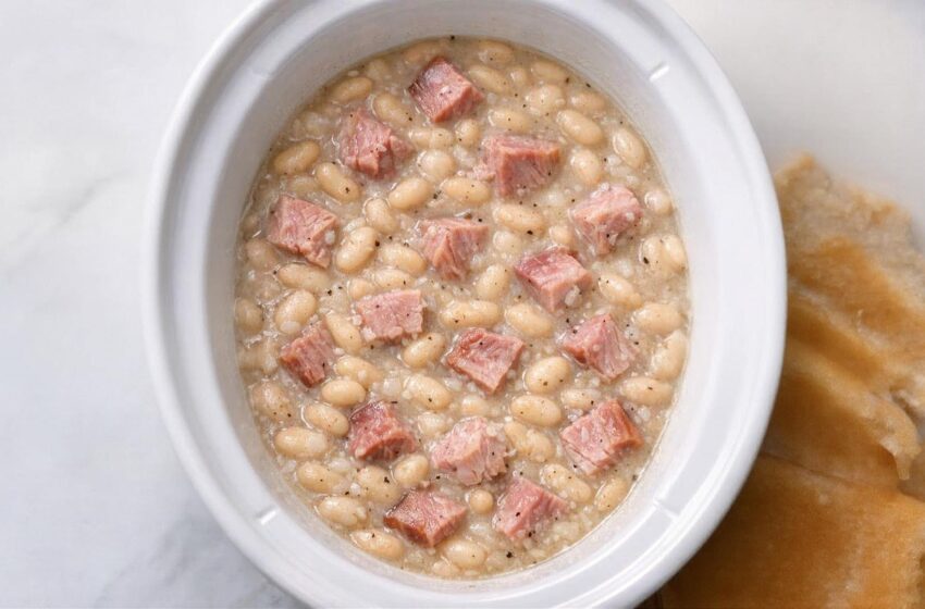3-Ingredient Slow Cooker Smoked Turkey & Beans