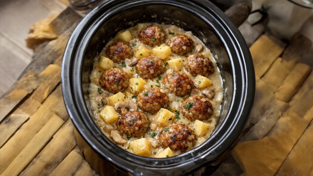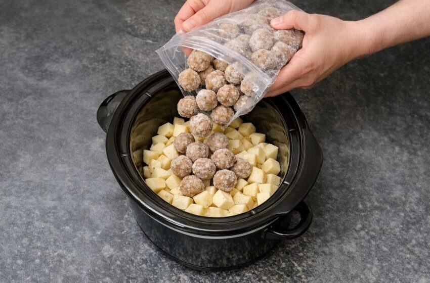 You literally dump frozen meatballs right over raw cubed potatoes, add just three basic pantry ingredients, and let the slow cooker do absolutely all of the work. By the time your house smells like a cozy Sunday dinner, the pot will be nearly empty before you can even sit down with your own bowl!