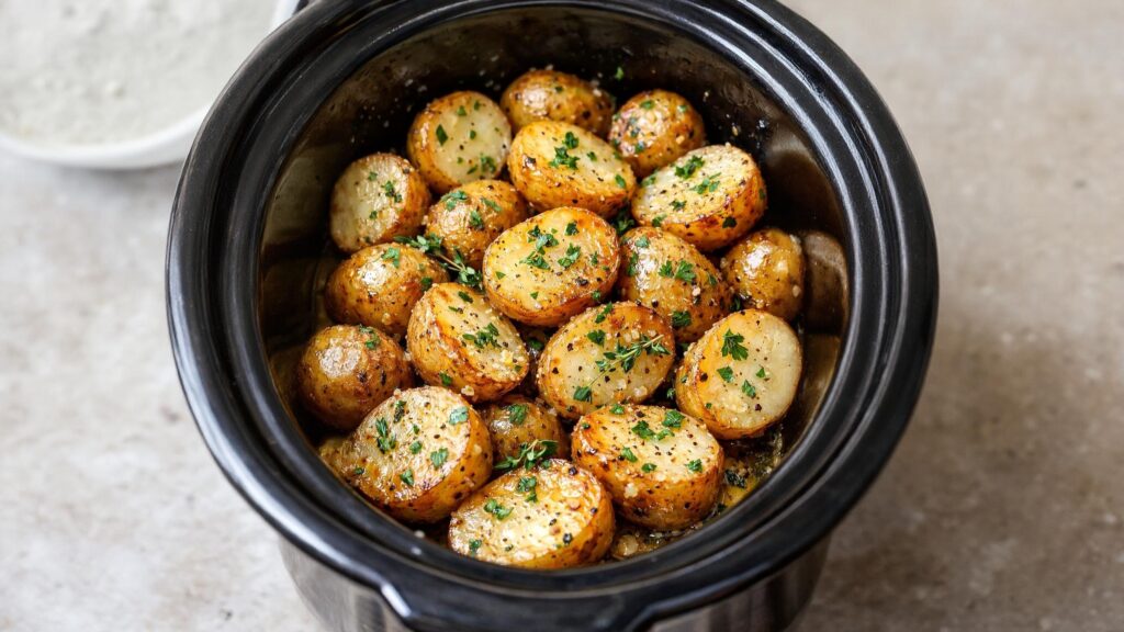 You quite literally dump raw, halved white potatoes straight into the crockpot, add four everyday pantry staples, and let time and gentle heat do all the heavy lifting. The result is a silky, buttery, herb-scented side dish that tastes like you fussed over the stove for hours, even though you barely lifted a single finger.