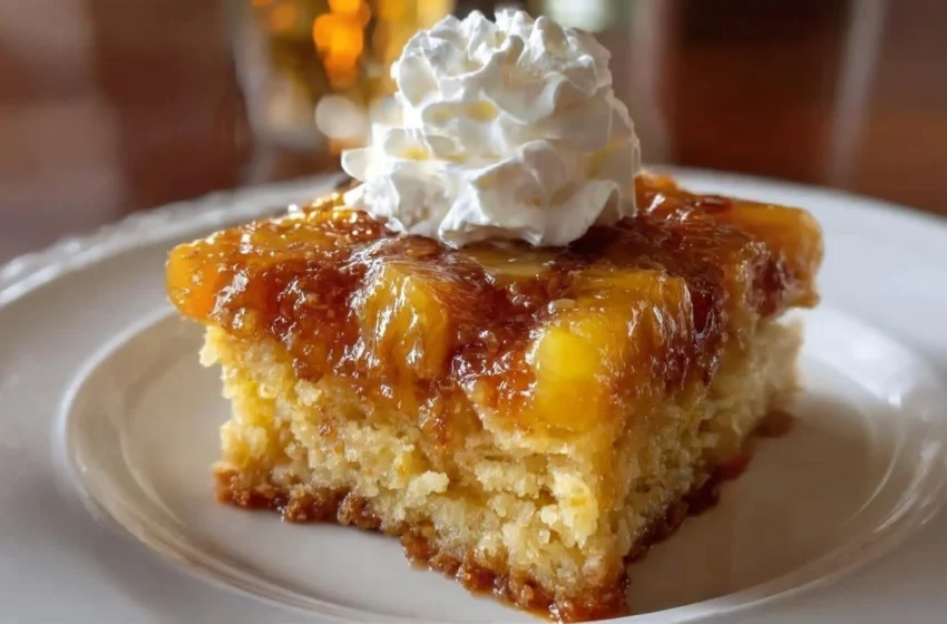 What emerges from the oven is a dessert that defies its simple preparation. The bottom layer transforms into a bubbling, caramelized, jammy pineapple compote, while the dry cake mix and butter on top bake into a golden, slightly crisp, incredibly buttery cobbler-like crust. Served warm with a massive scoop of cold vanilla ice cream or freshly whipped cream, it is the ultimate comfort dessert for busy weeknights or last-minute potlucks.