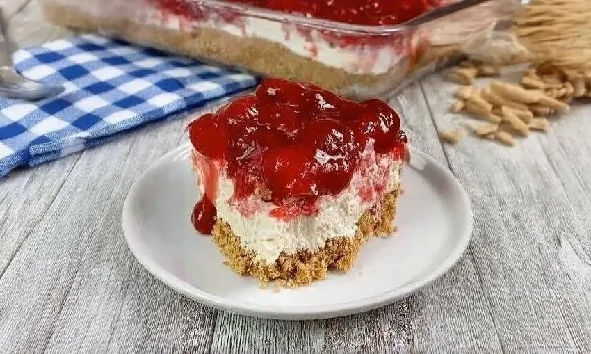 By folding freshly whipped heavy cream into sweetened, softened cream cheese, you create an incredibly light, mousse-like filling that sets up beautifully in the fridge. Crowned with a glossy, vibrant cherry pie filling over a buttery graham cracker crust, it is a highly photogenic, crowd-pleasing dessert that you can prep in under 15 minutes!