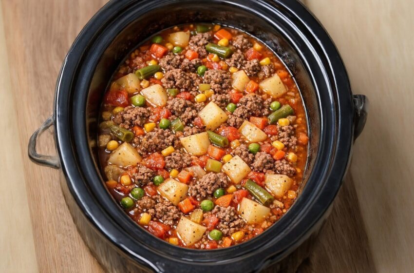 💡 Crucial Step: Drain the excess fat from the skillet before adding the beef to the slow cooker so your soup broth isn’t greasy!