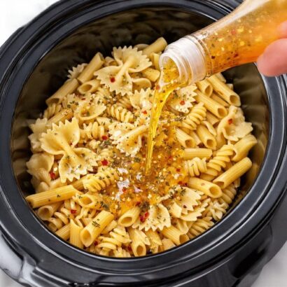 Yes! You can cook the roast and soup mixture on LOW for 8–10 hours. Boil the noodles separately and fold them in at the very end just like the oven version.