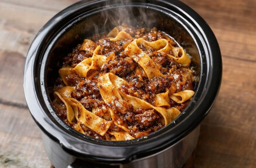 Inspired by classic Midwestern beef and noodles, this recipe strips the process down to the bare essentials. The wide ribbon pasta gets folded into a rich, caramelized onion gravy that simmers gently all day. All you have to do is lift the lid, toss in the noodles, and enjoy a warm, steamy bowl of pure comfort.