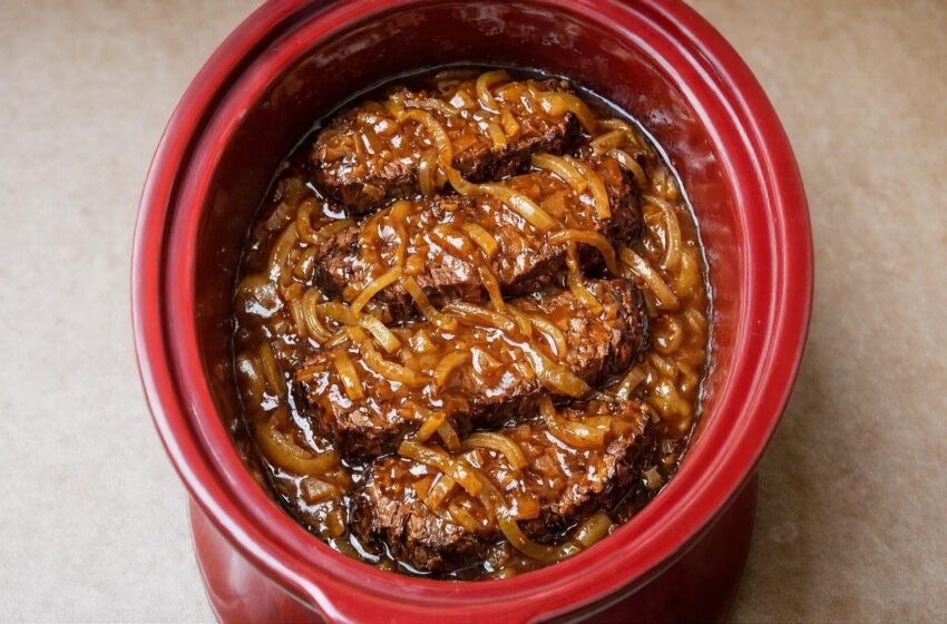 Return the sliced beef to the slow cooker, nestling it back into the onion gravy. Spoon the sauce over the top so every piece is well-coated. Let it sit on WARM for 10 to 15 minutes before serving to let the flavors meld.