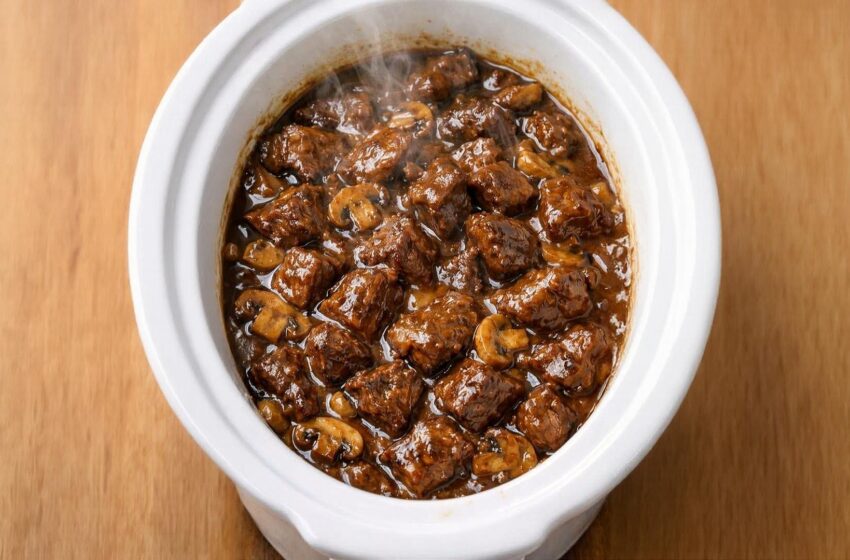 The secret to this dish is the strict “no peeking” rule. By trapping all the steam and heat inside the slow cooker, the tough stew meat gently braises until it is completely fork-tender. Blanketed in a rich, glossy mushroom and onion gravy, it delivers ultimate comfort food flavor with practically zero effort.